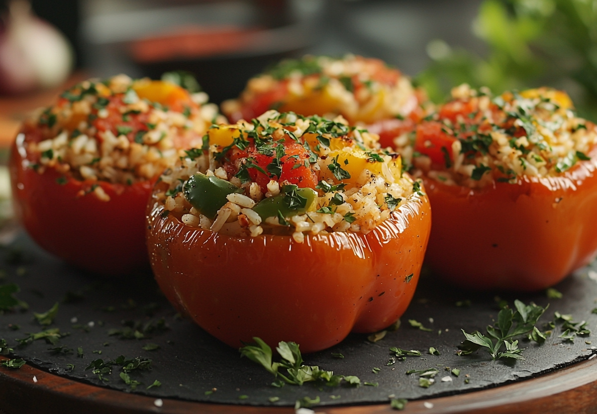 Фаршированный болгарский перец — универсальное блюдо. Его можно готовить на каждый день, подавать к праздничному столу и даже заморозить про запас на зиму. Сегодня поделимся рецептом фаршированных перцев для вегетарианцев. Впрочем, они придутся по вкусу всем.