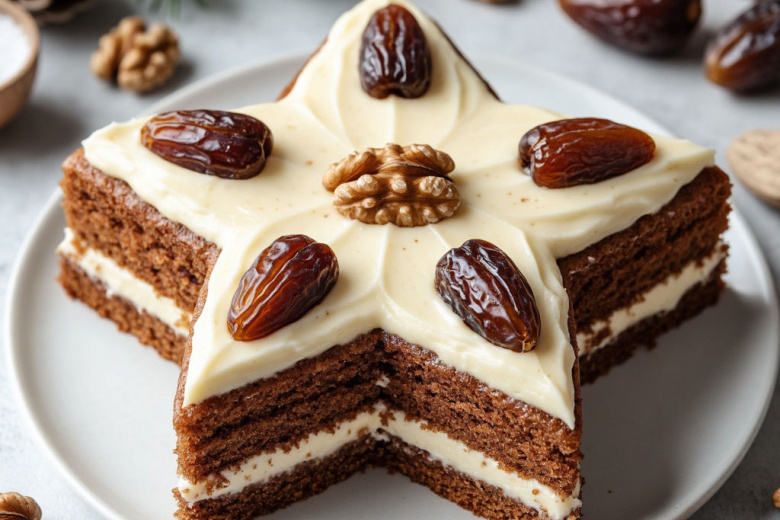 Финики, грецкий орех и сливочный крем — собираю торт «Рождественская звезда». Богатый вкус, сияющий на праздничном столе