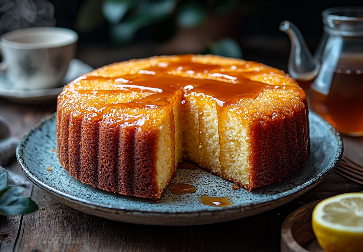 - Пропитка: поджарьте сахар на сковороде с корицей до золотистости сахара, добавьте молоко и прогрейте до растворения. Горячий пирог проколите вилкой и равномерно полейте молочной смесью.