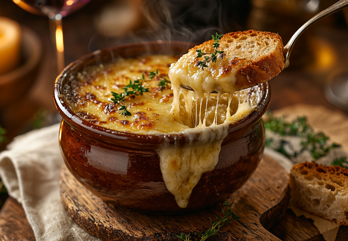 Французский луковый суп — классика, которая всегда в моде! Это блюдо покорит вкусом и ароматом — нежный карамелизированный лук, сыр и хрустящий хлеб создают идеальное сочетание, переносящее прямо в самое сердце Франции. Несложно готовится и отлично подходит для романтических вечеров.