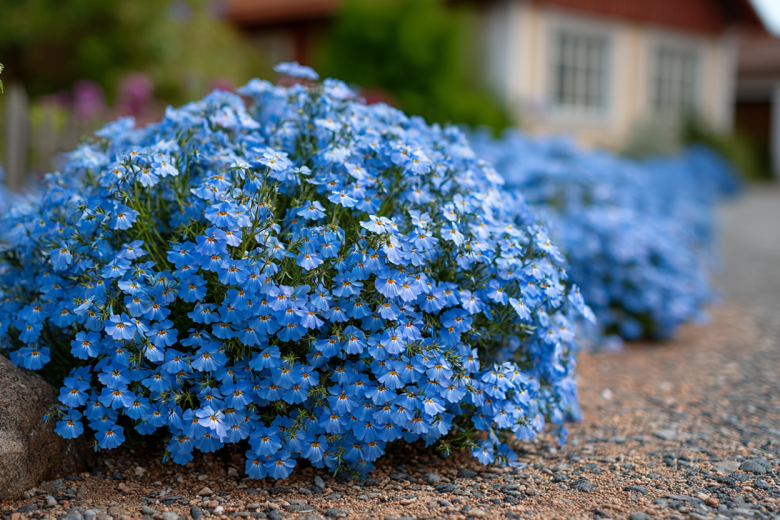 Ее цветение настолько обильное, что под лазурным облаком почти не видно листвы. Лобелия быстро превратит клумбу в нежные подушки из сотен цветков. Она цветет непрерывно с июня до самых заморозков, идеально подходит для бордюров, рабаток и подвесных кашпо.