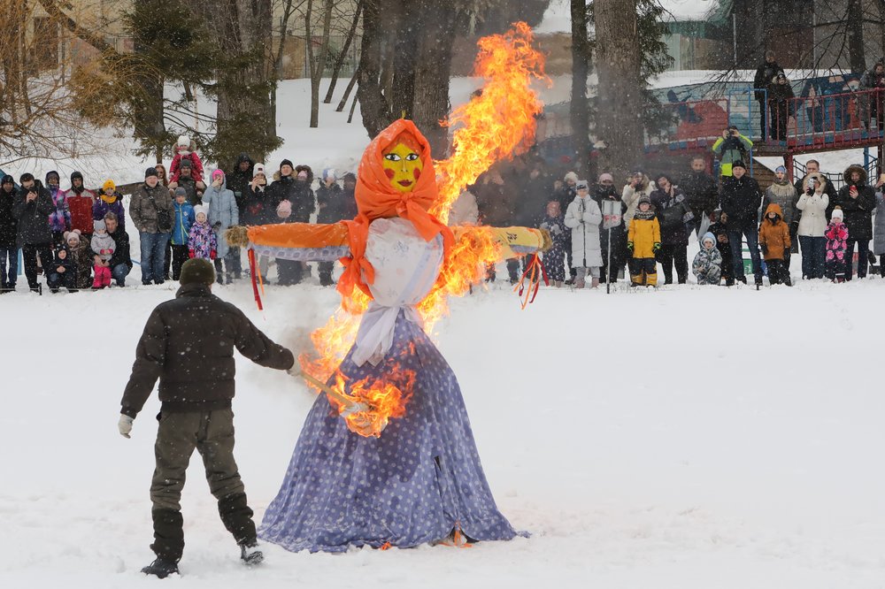 Последний день Масленицы традиционно отмечается в России сжиганием чучела, символизирующего окончательный уход зимы и вступление весны в свои права.