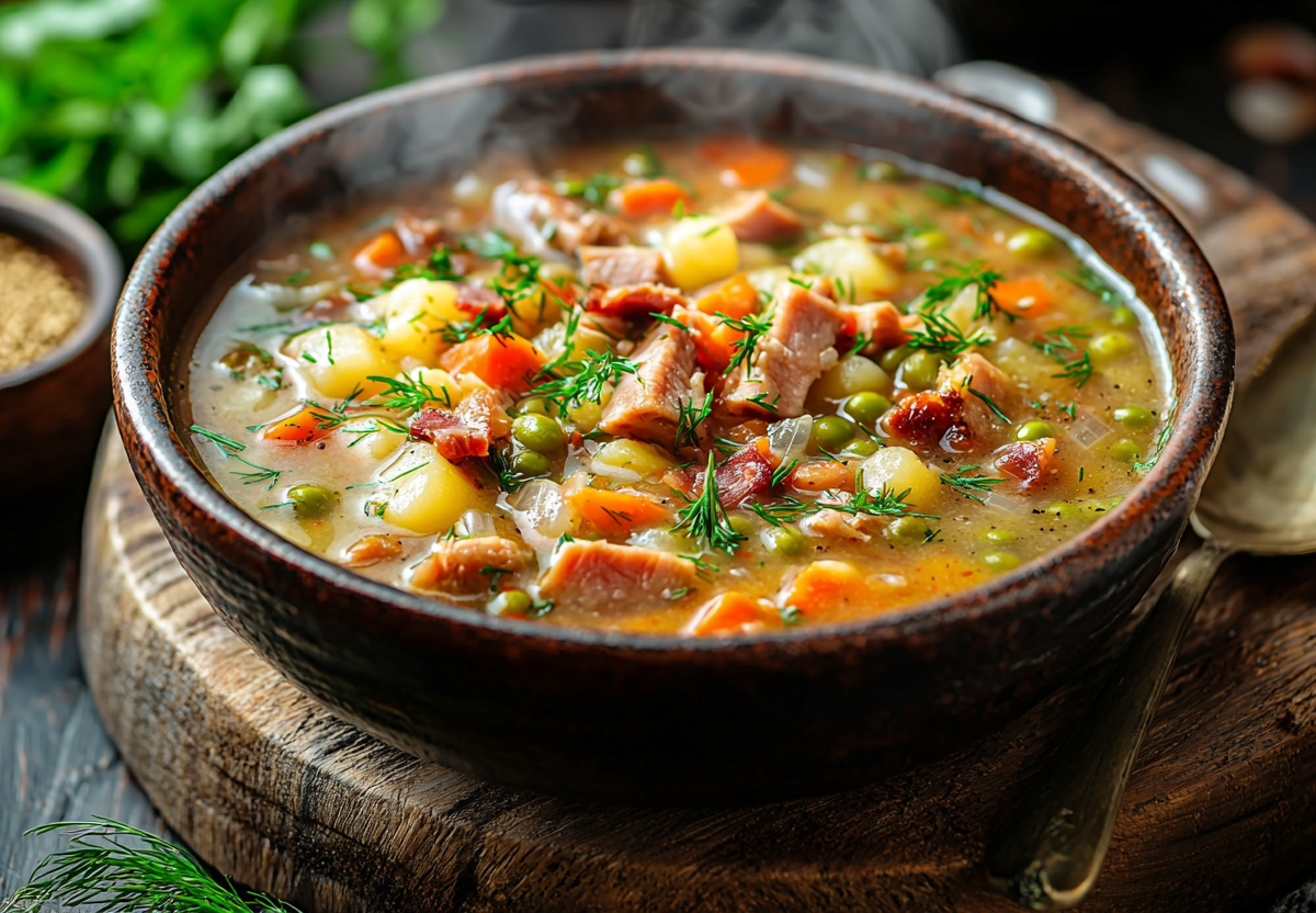 Гороховый с копчеными ребрами! Вкусный, наваристый и очень простой! Ароматный бульон на копченых ребрышках, нежный горох и аппетитные овощи — это блюдо вернет вас в теплые воспоминания из детства. Идеальный вариант для сытного семейного обеда в холодный день.