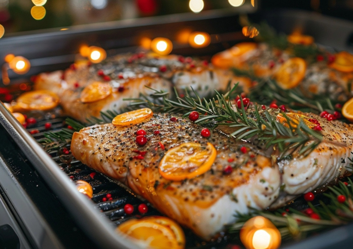 Нередко гости оставляют нетронутыми горячие блюда. В праздничном меню так много угощений, что запеченная курица не помещается в желудках. Если отказываться от горячего не хочется, предлагаем приготовить морского окуня с апельсинами в духовке. Необычное сочетание острого соуса и нежной мякоти никого не оставит равнодушным. Кроме того, блюдо позволит насладиться всеми новогодними салатами, ведь рыба не очень сытная.