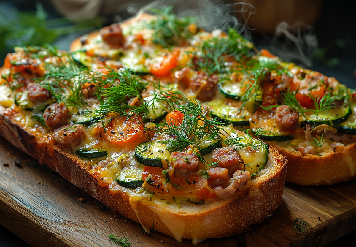 Горячие бутерброды с кабачком и колбасой! Батон, вкусная намазка и в духовку! Эти бутерброды — идеальный перекус, который покорит всех! Хрустящий батон, расплавленный сыр, ароматная колбаса и сочные овощи с тертым кабачком — просто, вкусно и очень аппетитно.