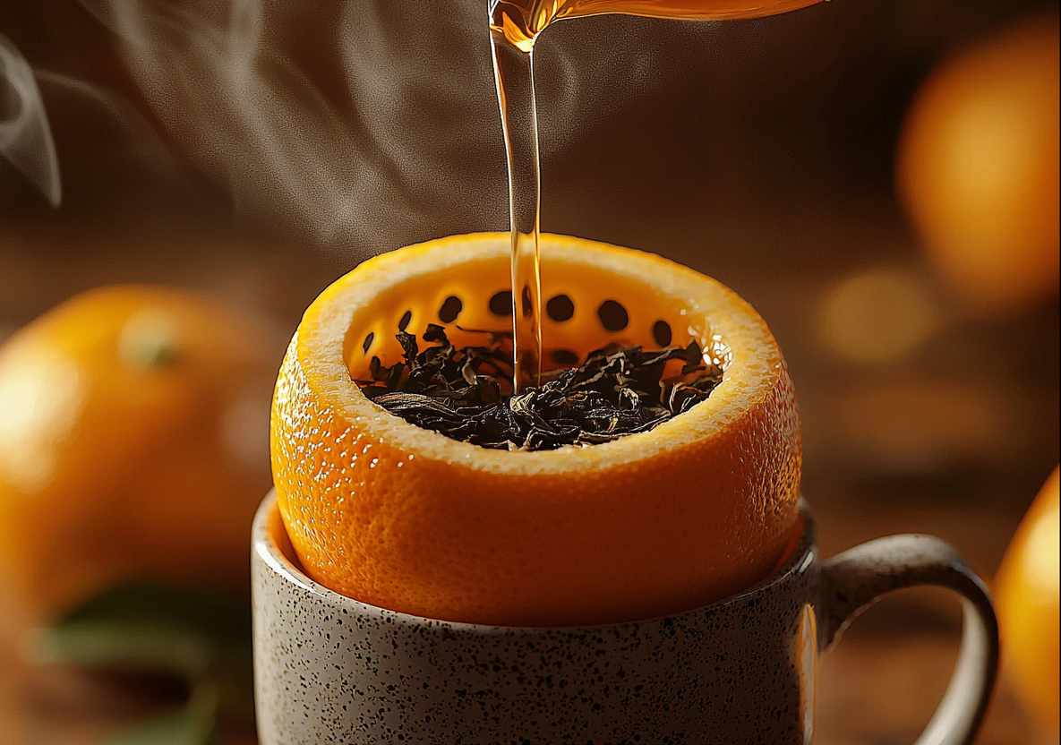 Горячий чай через половинку апельсина: вкуснейший цитрусовый напиток для холодного вечера. Этот чай стал для меня настоящим открытием — согревающий, ароматный, с волшебным цитрусовым вкусом! Готовила для друзей в прошлые выходные — теперь все просят рецепт. Идеальный способ поднять настроение в пасмурный день.