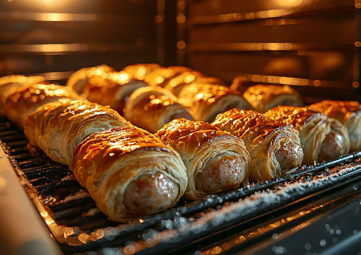 Если тесто замороженное, заранее достаньте его из холодильника и дайте оттаять при комнатной температуре. Раскатайте тесто, чтобы оно стало более пластичным, и нарежьте полосками шириной 2–3 см. Каждую сосиску оберните тестом по спирали или полностью закройте её, как пирожок. Выложите сосиски в тесте на противень, застеленный пергаментной бумагой. Взбейте яйцо и смажьте им верхнюю часть выпечки, чтобы получилась аппетитная золотистая корочка. Разогрейте духовку до 200 °C. Выпекайте сосиски в тесте 20–25 минут до золотистого цвета.