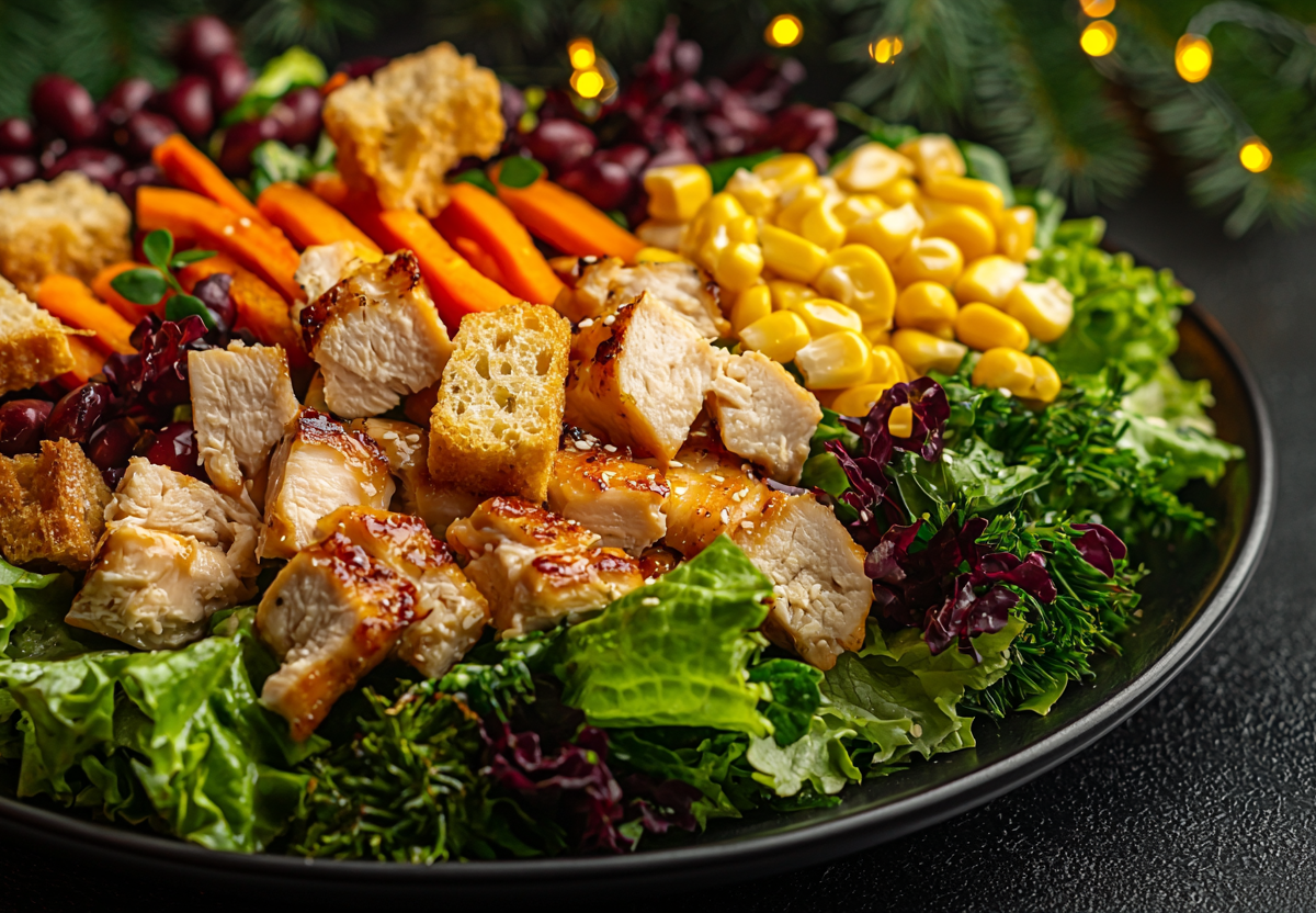 Гости на пороге? Смешиваю этот салат за 5 минут — 3 баночки из магазина и копченая грудка: вкусно неимоверно. Обязательно сохраните этот рецепт — он станет вашим фаворитом для быстрого и эффектного ужина или закуски! Этот салат — идеальный баланс вкусов и текстур. Копченая курица, сладкая кукуруза, сытная фасоль и пикантная корейская морковь создают насыщенную композицию, которую завершает хруст свежего салата и ароматных домашних сухариков.
