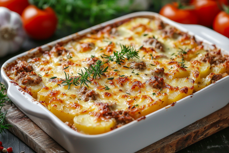 Вкус — потрясающий: нежная, пропитанная соусом картошка, сочный фарш и тягучая сырная корочка создают идеальную комбинацию.