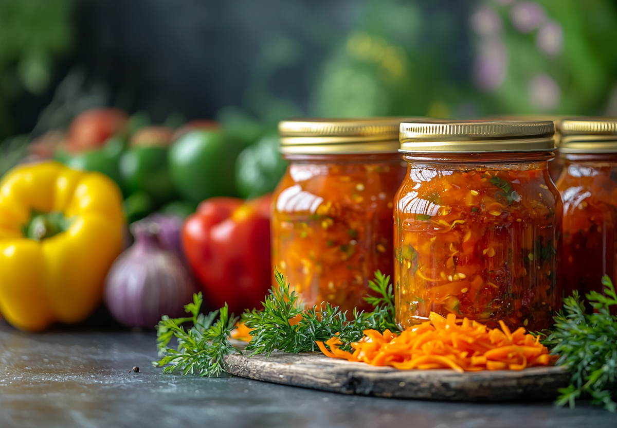 Рецепт: промойте 1 кг плотных перцев (лучше красных и желтых), удалите семена и нарежьте широкими полосками. Пропустите через мясорубку 500 г спелых томатов и 3 зубчика чеснока. В кастрюле разогрейте 50 мл растительного масла, обжарьте 1 нарезанную луковицу до золотистости, добавьте перец и тушите 10 минут под крышкой. Влейте томатное пюре, добавьте 1 ст. л. сахара, 1 ч. л. соли, 1/2 ч. л. черного перца и 2 лавровых листа. Тушите на среднем огне 20 минут, периодически помешивая. За 5 минут до готовности влейте 1 ст. л. уксуса 9%.