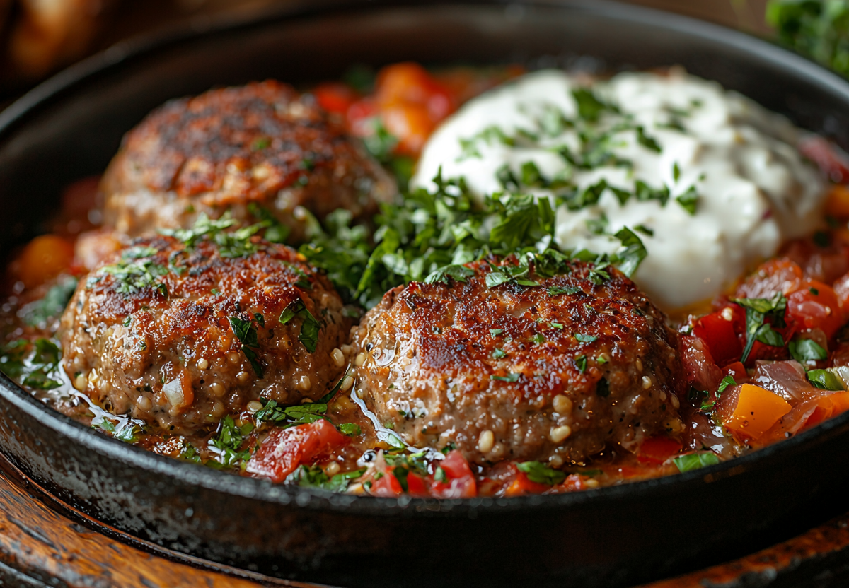4. Смешайте сметану, воду, муку, томатную пасту, специи, залейте гречаники и тушите минут 20−30 до готовности. Приятного аппетита!