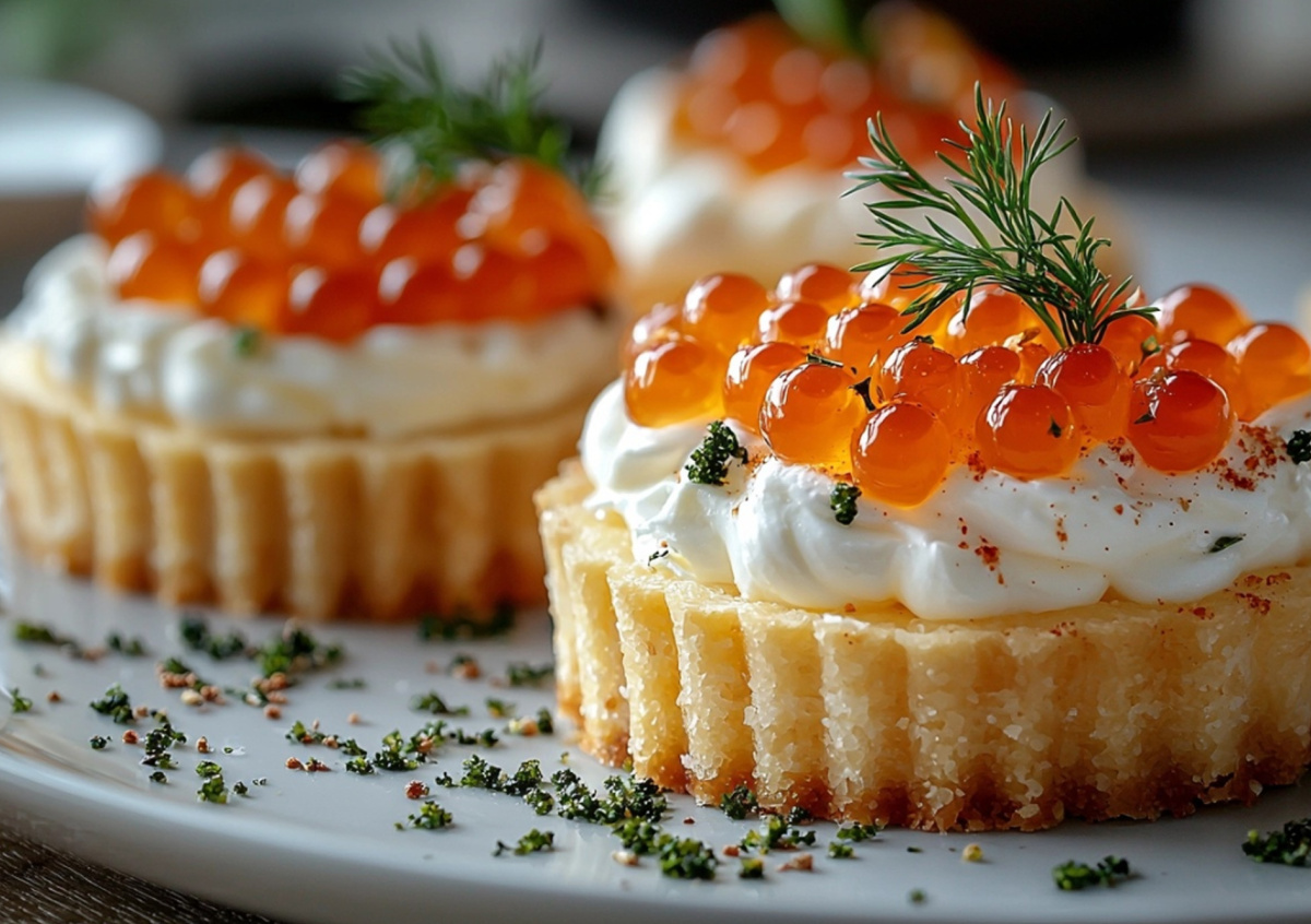 В этом году предлагаем подать на праздничный стол новогодние тарталетки с красной икрой и воздушным кремом из васаби. Приятная остринка в сочетании с нежной консистенцией подарит незабываемые ощущения и порадует вас и вашу семью.