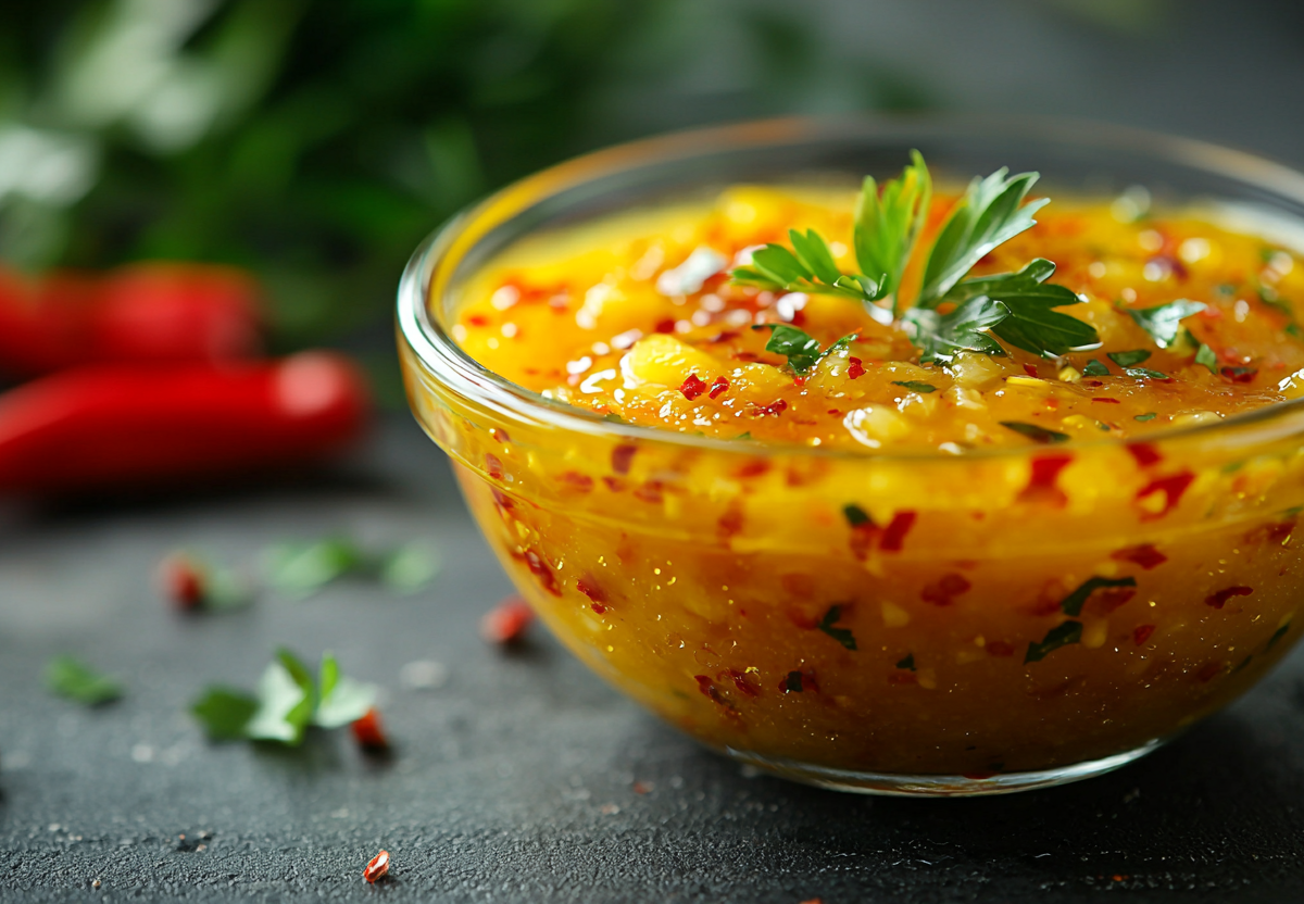 Для приготовления потребуется: 300 г свежего или консервированного ананаса, 6 шт. красного перца чили, 150 г оливкового масла, 30 г рисового уксуса, 100 г сладкого соуса чили, 15 г паприки. Ананас измельчают в блендере до состояния пюре. Перец чили очищают от семян и мелко нарезают. Соединяют ананасовое пюре с перцем, добавляют оливковое масло, рисовый уксус и соус чили. Тщательно перемешивают до однородной консистенции. Добавляют паприку для цвета и аромата. Секрет успеха заключается в регулировании остроты — количество перца можно уменьшить или увеличить по вкусу. Соус можно процедить через сито для более нежной текстуры. Подают охлажденным к горячим и холодным блюдам.