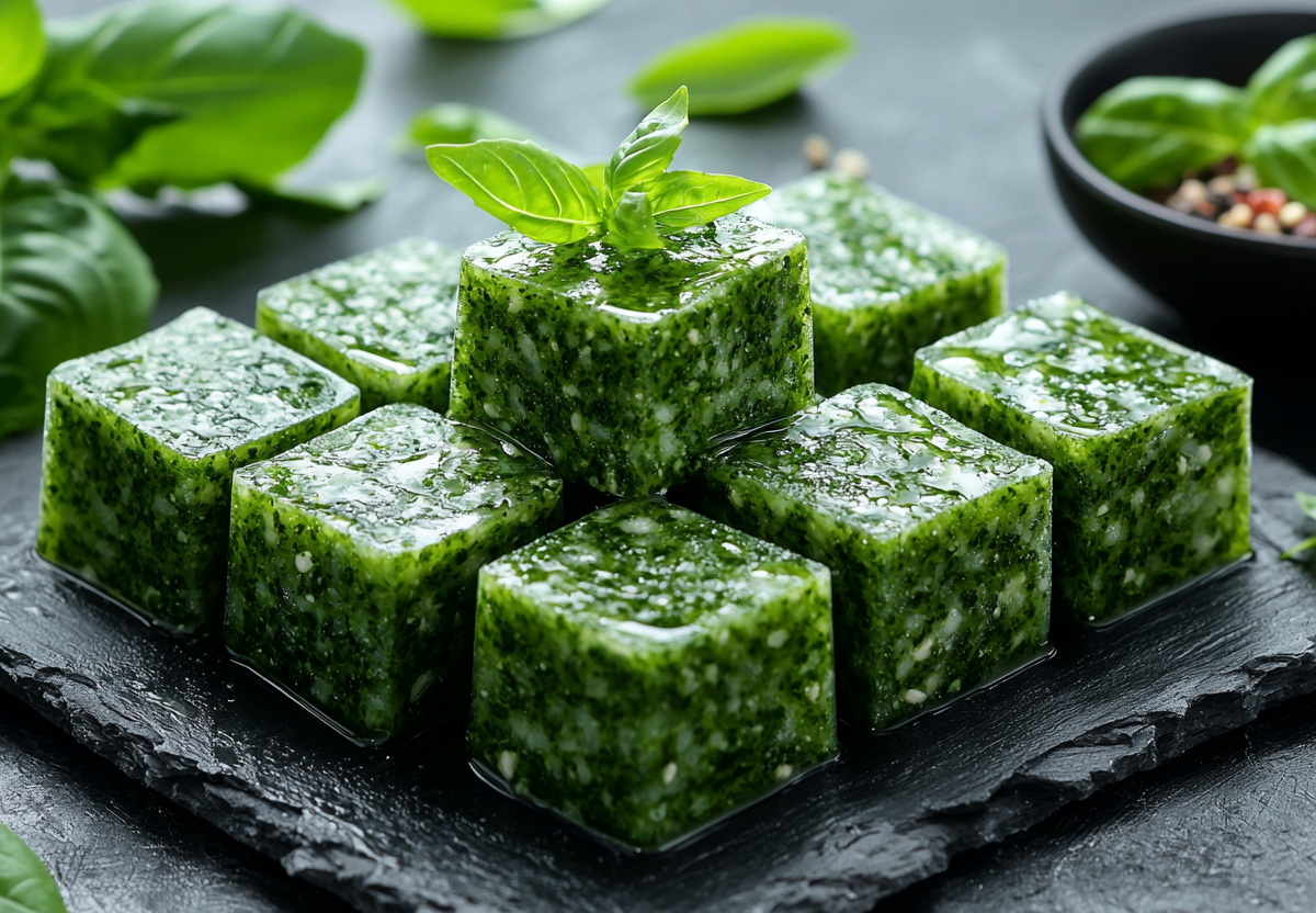 Замороженный песто в кубиках — лето в морозилке! Когда за окном метель, а так хочется свежего базилика… Этот рецепт — настоящее спасение! Ароматные зеленые кубики спасут любое блюдо: пасту, супы, пиццу или даже бутерброды. Готовила вчера — весь дом пахнет Италией!