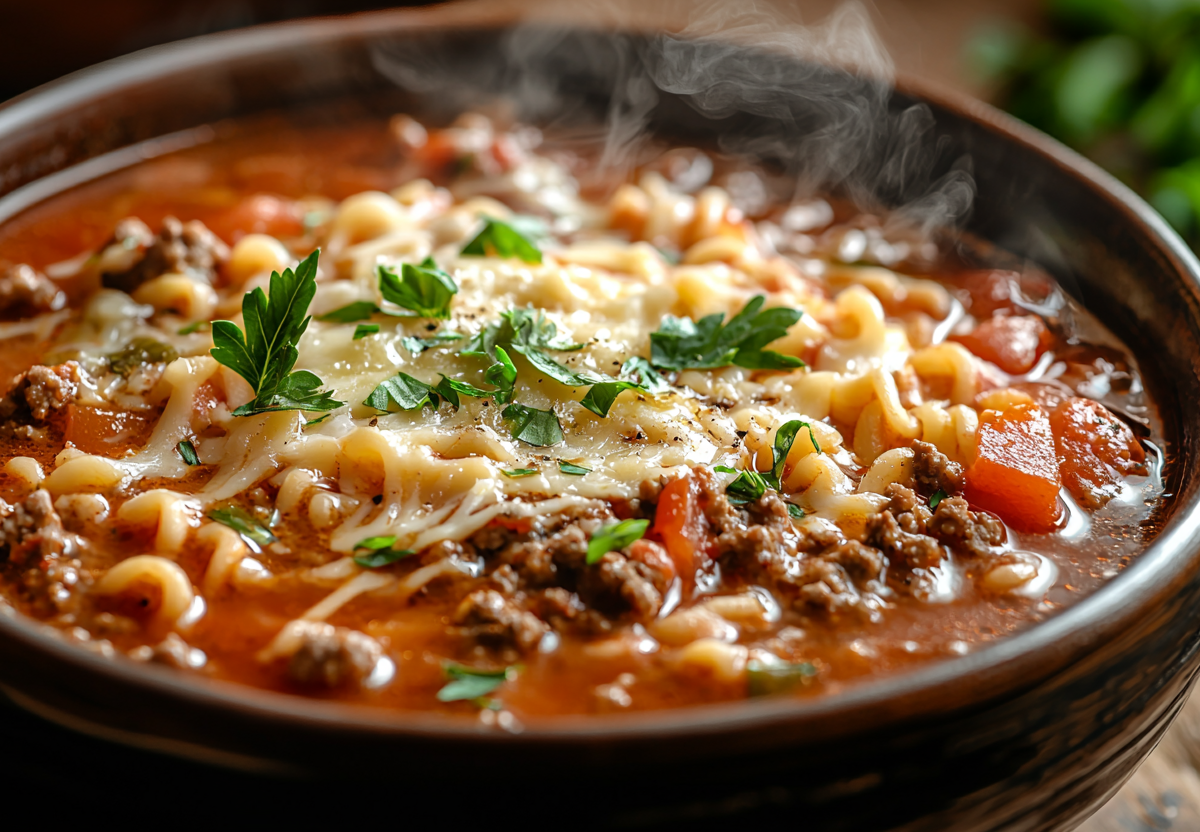 Лазанья-суп — это гениальное изобретение для всех любителей итальянской кухни. Здесь есть все: мясной фарш, томатный соус, сырная сливочность и паста, но в формате быстрого и удобного супа.