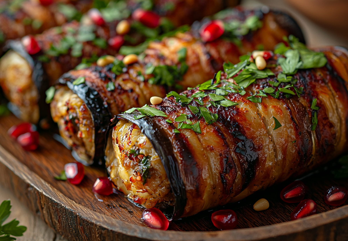 Это легкая и свежая закуска, которая станет отличной заменой привычным роллам. Баклажаны мягкие и ароматные, а сливочный сыр с зеленью и орешками придает особенный вкус.