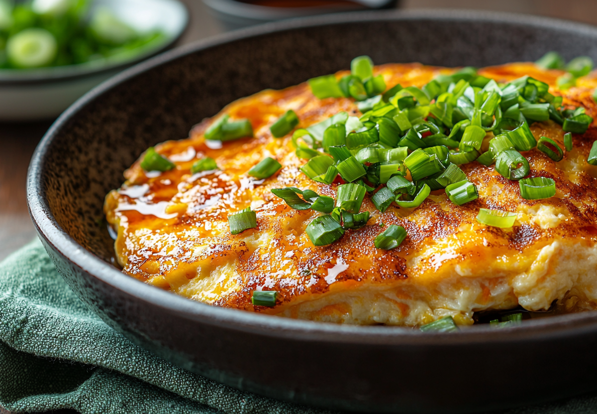 Морковь натираю на мелкой терке. Зеленый лук мелко шинкую. В глубокой миске взбиваю яйца с молоком до однородности, но без пены. Добавляю натертую морковь, зеленый лук и все специи: соль, щепотку куркумы для цвета, сухой чеснок и перец по вкусу. Аккуратно перемешиваю. Форму для запекания (лучше силиконовую или керамическую) слегка смазываю маслом. Переливаю в нее яичную смесь. Накрываю форму фольгой или крышкой, чтобы конденсат не попадал в омлет. В широкую кастрюлю наливаю воду (уровень 2–3 см), довожу до кипения. Устанавливаю над водой решетку или дуршлаг, ставлю на нее форму с омлетом. Накрываю кастрюлю крышкой и готовлю на среднем огне 15–20 минут. Готовность проверяю зубочисткой — она должна выходить сухой. Даю омлету немного остыть в форме. Подаю, полив соевым соусом и посыпав свежим зеленым луком.
