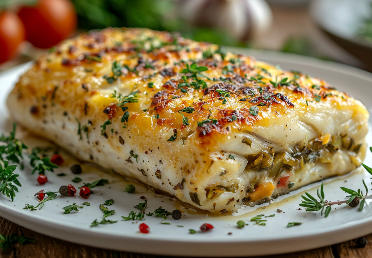 Рыбу начиняю овощной смесью и выкладываю в форму для запекания. Заливаю 200 мл сливок и обильно посыпаю 100 г тертого твердого сыра. Запекаю в разогретой до 180 °C духовке 25–30 минут до золотистой сырной корочки. Подаю горячей с отварным рисом или молодым картофелем.