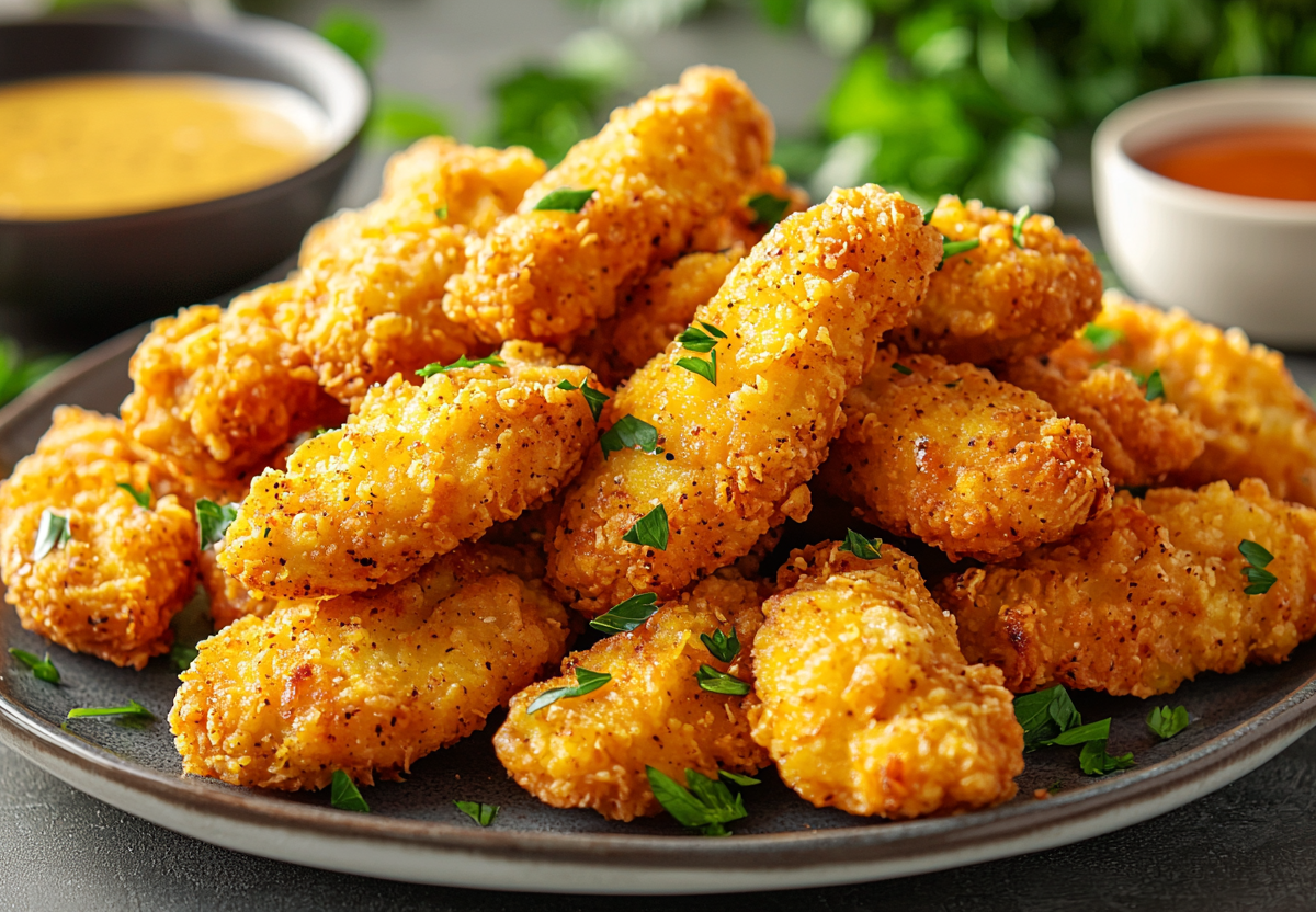 1. Первым делом подготовьте куриные грудки, тщательно помыв и нарезав их. В одной миске соедините муку с солью, паприкой и смесью перцев, чтоб получить ароматную панировку. В другой миске взбейте яйца с водой, подготовив жидкую основу. Обваляйте куриные полоски сначала в муке, затем окуните в яичную смесь и снова обваляйте в муке. Это создаст отличный каркас для хрустящей корочки.