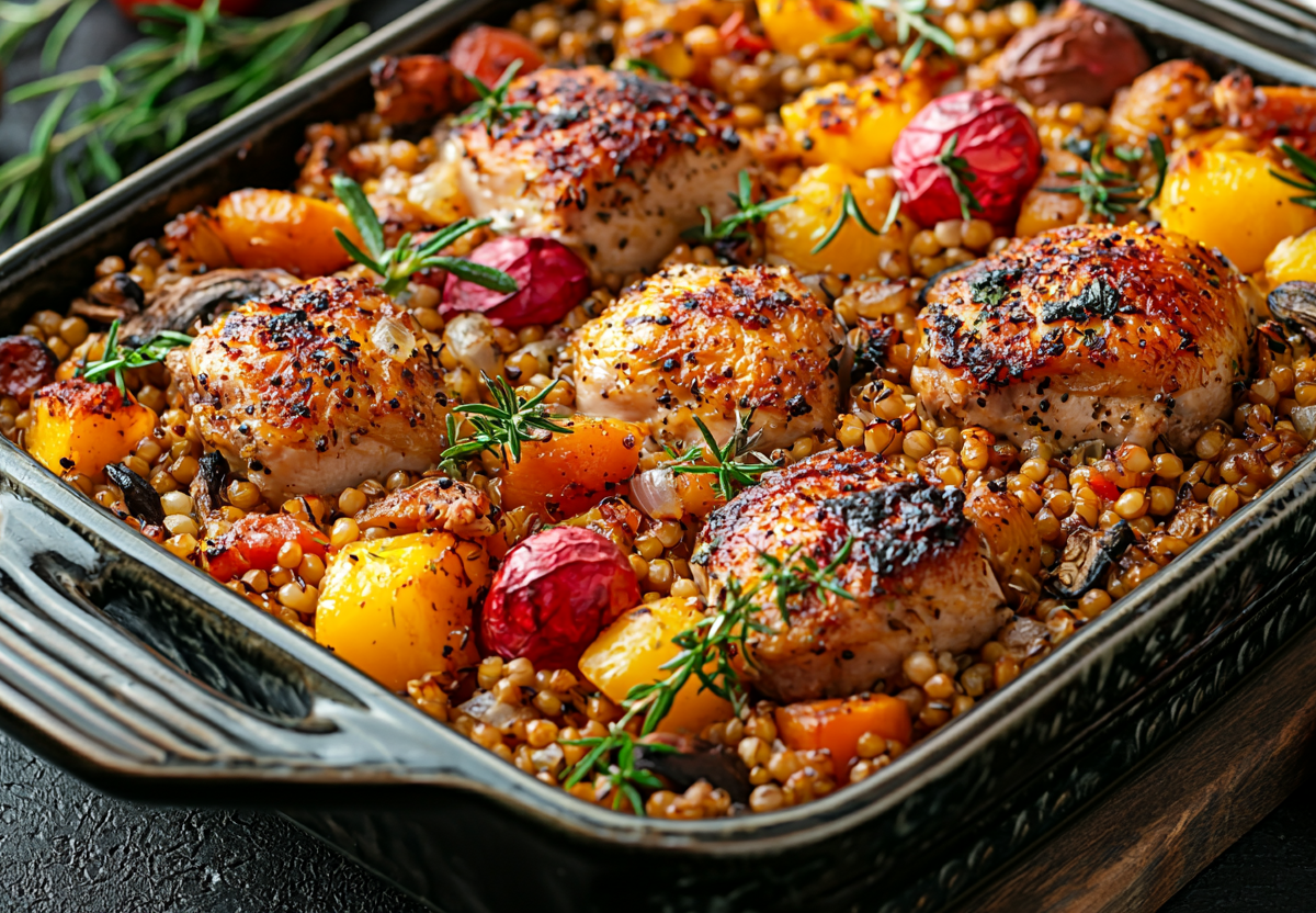 Запекание в духовке — лучший способ получить идеальную гречку. Жар равномерно распределяется со всех сторон, крупа не разваривается и сохраняет свою структуру, впитывая все соки от курицы и овощей.