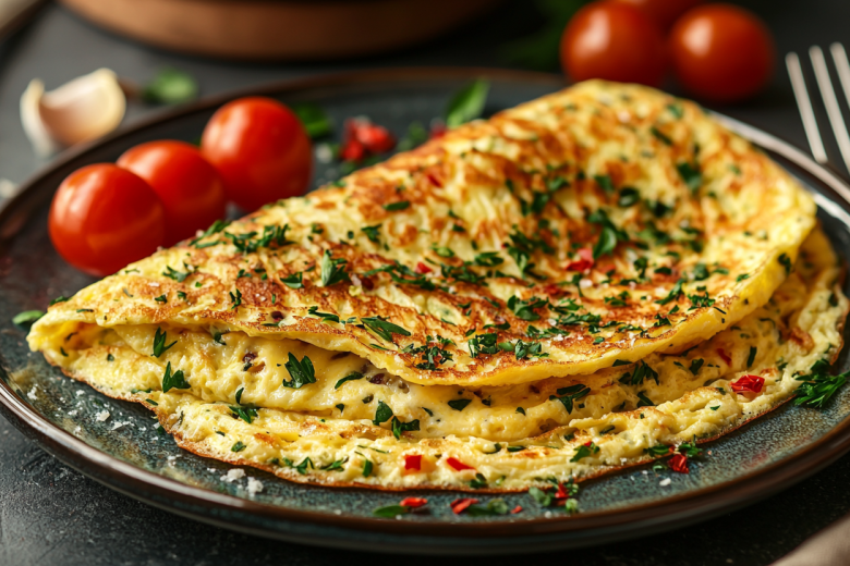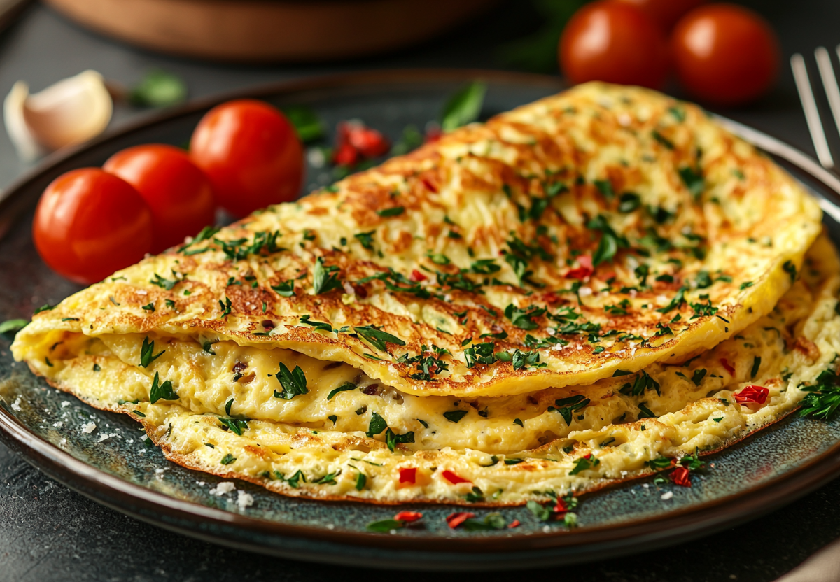 Для приготовления понадобится: 4 яйца, 150 г сыра сулугуни, 2 ст. л. сливочного масла, соль и свежая зелень. Особенность этого омлета в особой технике приготовления: яйца взбиваются вилкой до однородности, но не до пены, затем в них добавляется натертый на крупной терке сулугуни. На хорошо разогретую сковороду со сливочным маслом выливается яично-сырная смесь и готовится на среднем огне 5–7 минут под крышкой без перемешивания. Готовый омлет нужно сложить пополам и сразу подать на стол.