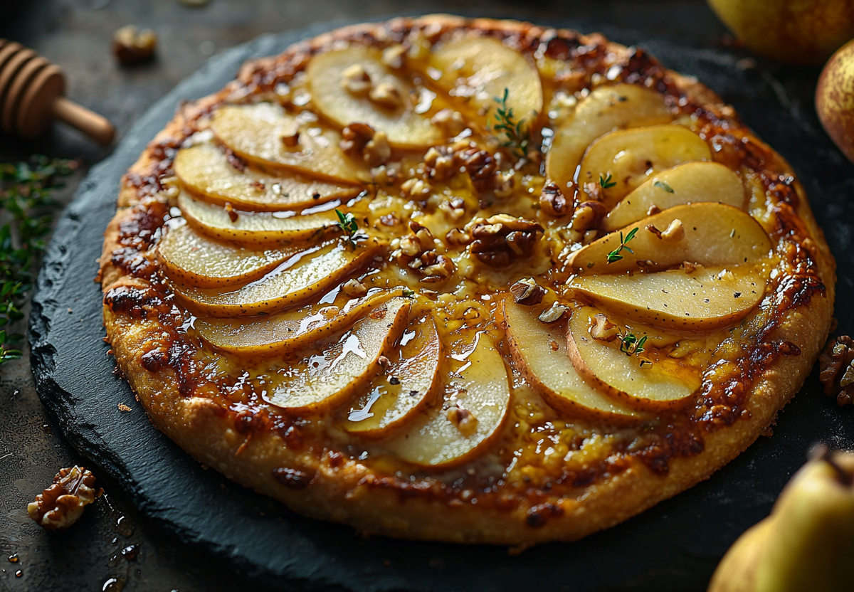 - Выпекайте 25–30 минут при 180 °C до золотистой корочки. Пока пирог теплый, полейте мёдом.