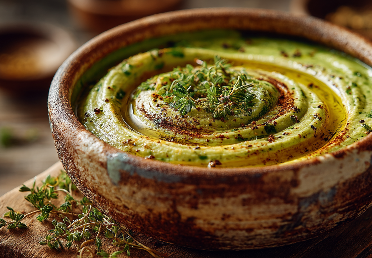 Горох колотый — 250 г, вода питьевая — 1,2 л, сода пищевая — 0,5 ч. л., соль — по вкусу, масло растительное (для подачи) — 2–3 ст. л., зелень свежая (укроп, петрушка) — для подачи.