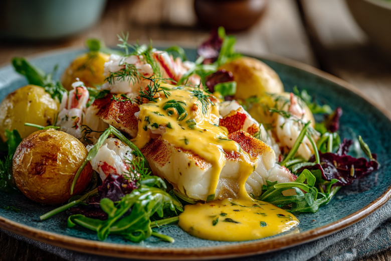 В бретонской кухне ценят суть продукта. Этот салат тому подтверждение: отварные треска, картофель и яйца заиграют новыми красками под роскошным теплым соусом на растертых желтках. Простота исполнения и глубина вкуса.