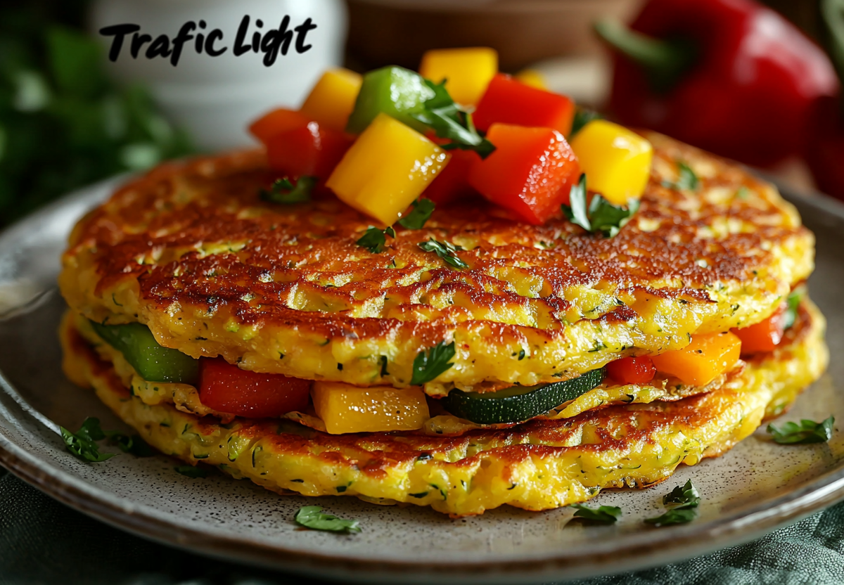 Готовим кабачковые оладьи «Светофор»! Представьте сочные оладушки, где в нежной кабачковой основе, как яркие огоньки светофора, сверкают кубики сочного болгарского перца: красного, желтого и зеленого! Это не просто завтрак, а праздник цвета и вкуса на вашей тарелке. Хрустящая корочка снаружи, тающая нежность внутри и взрыв свежести от разноцветного перца.