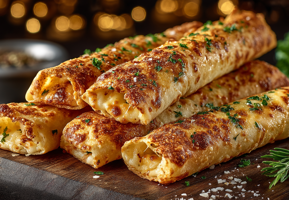 Сверху присыпаю кунжутом. Выпекаю в разогретой до 200 °C духовке около 5–7 минут, пока палочки не станут румяными и хрустящими. Подаю сразу, пока сырная начинка горячая и тянется.