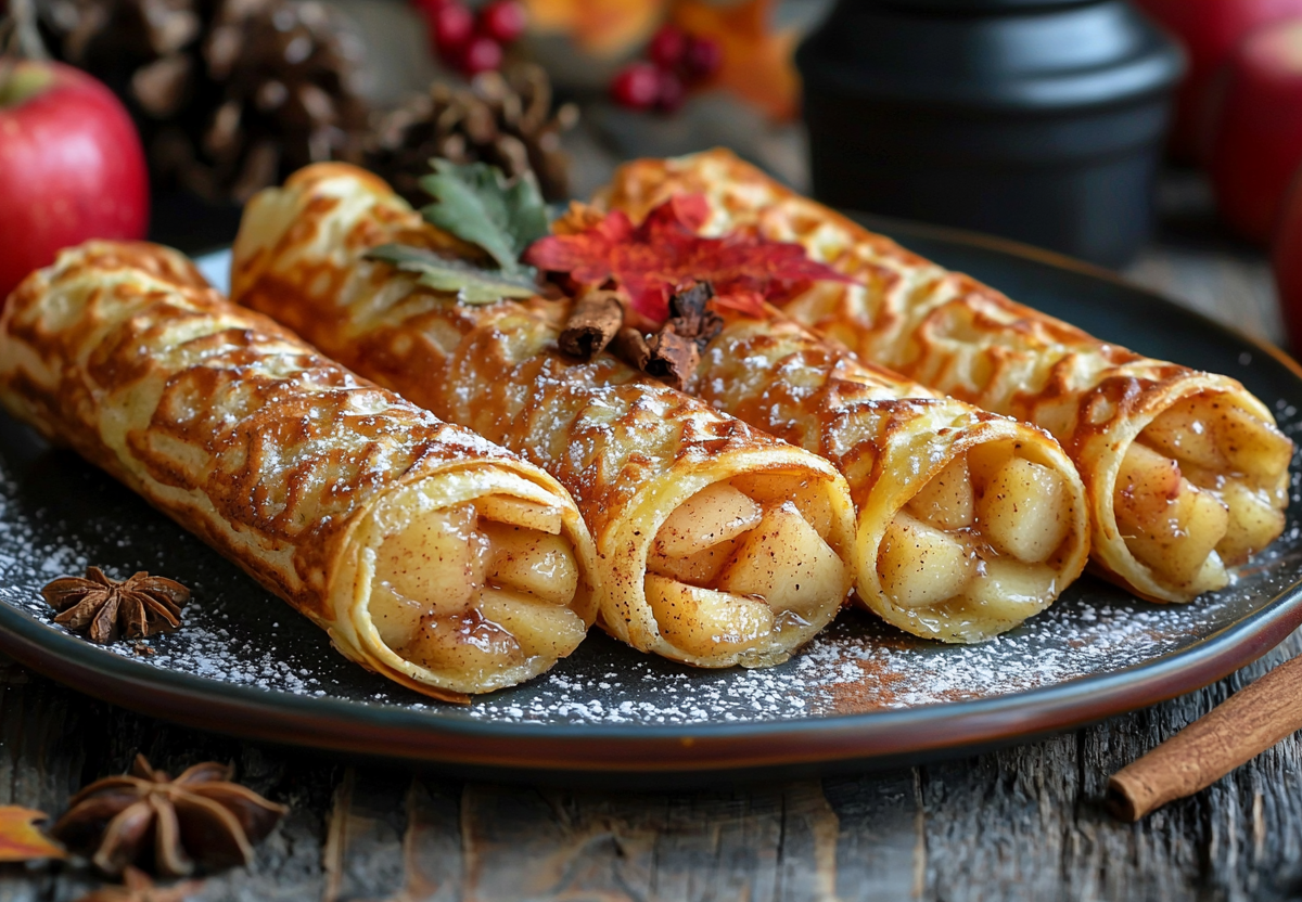 Для этих хрустящих трубочек с яблочной начинкой вам не понадобится вафельница. Готовим на сковороде! Вкус получается божественным: хрустящая вафля с маслянистыми нотами идеально контрастирует с нежной кисло-сладкой яблочной начинкой и ароматом корицы.