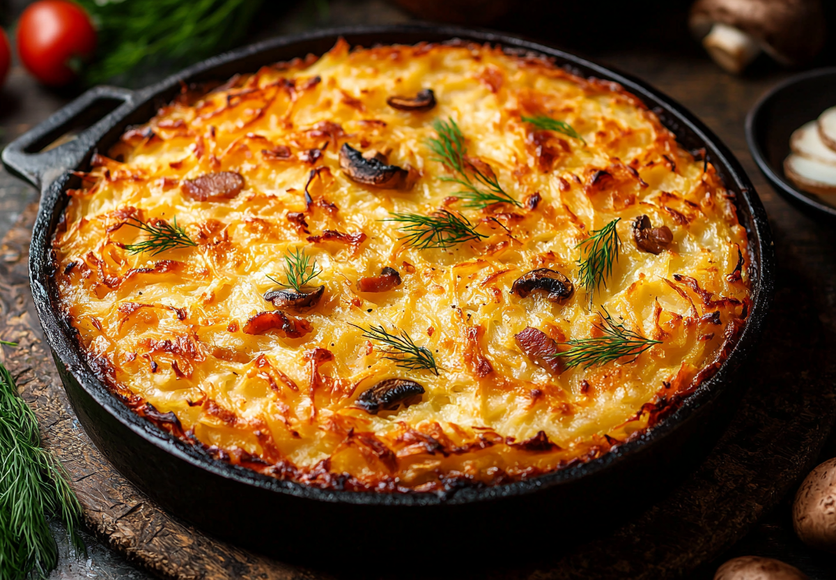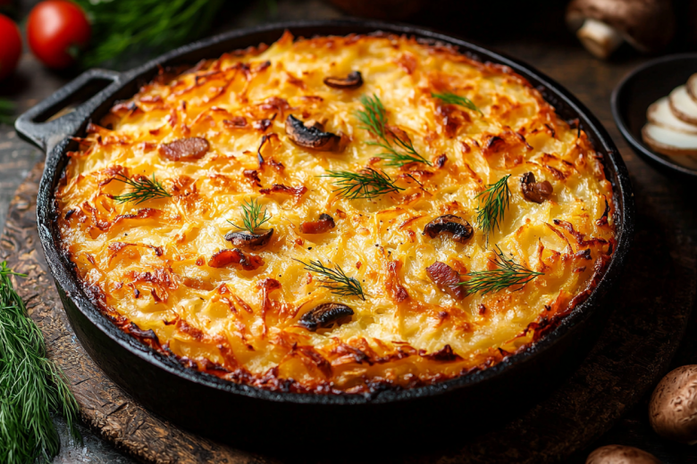 Хрустящий пирог из тертого картофеля с грибами — это сытное и необычное блюдо, которое отлично выручает в Великий пост — можно и на ужин, и к чаю подать.