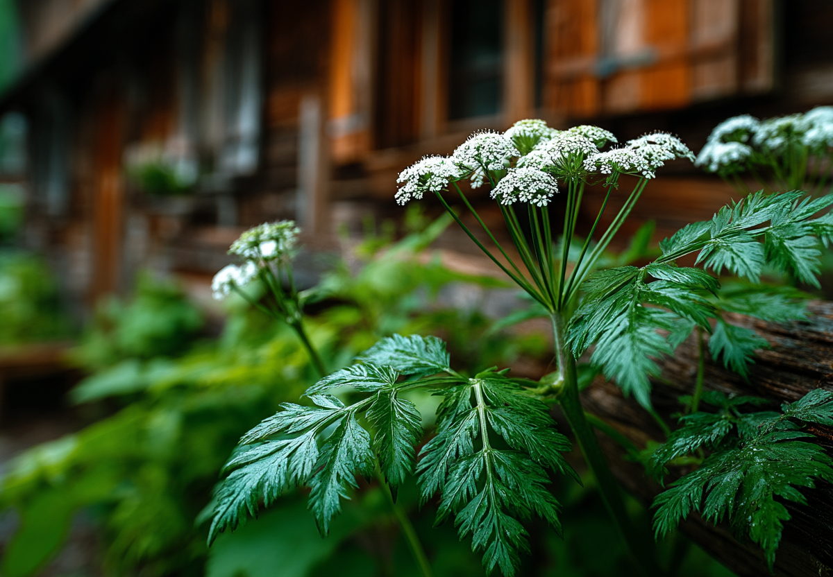 Особую угрозу представляет болиголов пятнистый — коварный сорняк, который легко спутать с укропом или петрушкой, однако все его части смертельно ядовиты. Распознать болиголов можно по высокому стеблю (до 1,8 метра) с характерными фиолетово-красными пятнами и неприятному «мышиному» запаху при растирании листьев.