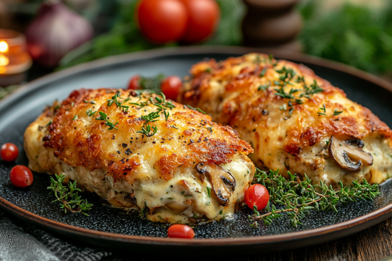Это блюдо создает атмосферу домашнего уюта и праздника одновременно. Хрустящие, запеченные до румяности картофельные «гнезда» служат идеальным съедобным сосудом для сочной куриной начинки с грибами, а щедрая шапка из расплавленного сыра добавляет нежности и завершенности вкусу. Такой ужин понравится всей семье и станет приятным завершением дня.
