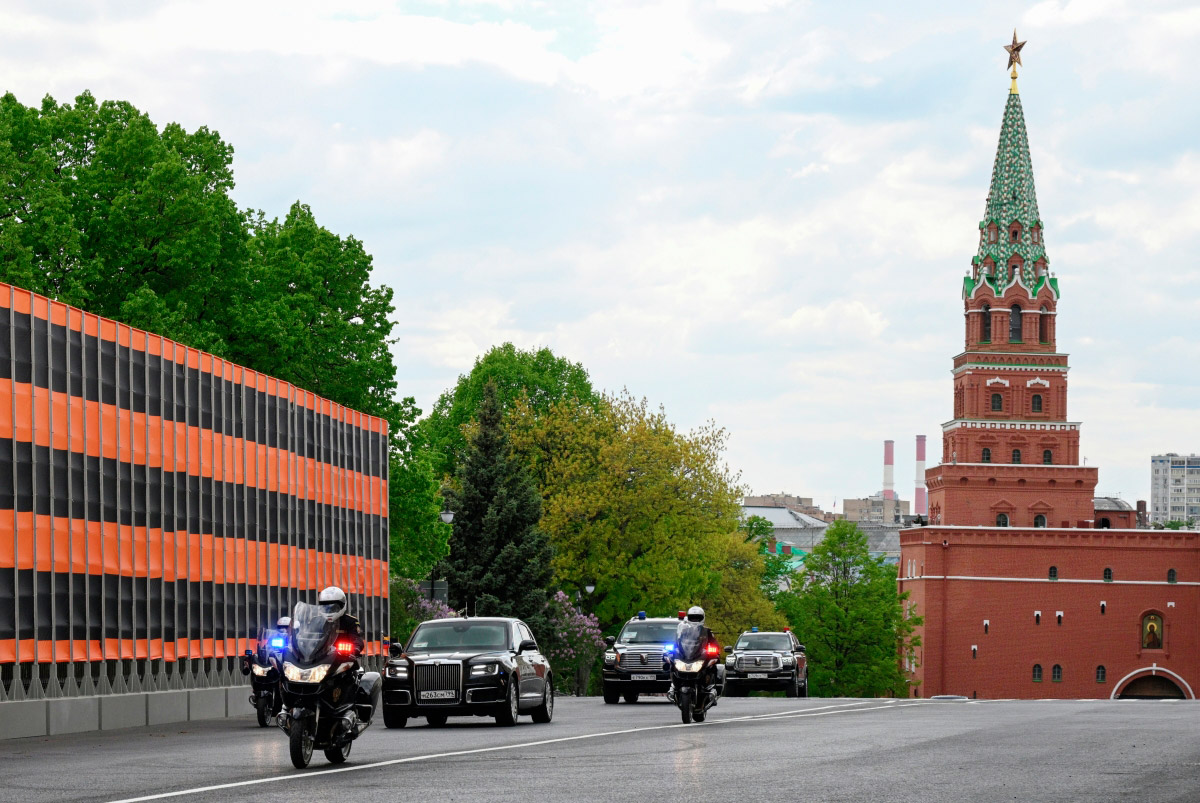 В Москве кортежи иностранных делегаций проехали мимо огромной георгиевской ленты, которой украсили маршрут к Кремлю, информирует Telegram-канал РИА Новости. На опубликованном видео видно, как автомобили иностранных лидеров движутся по дороге, вдоль которой натянута лента.