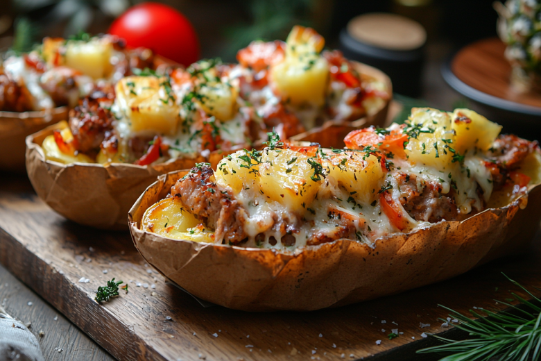 Вкус получается божественным: нежнейшее мясо, тающая картошка, пикантный сыр и сладковатые сочные ананасы, которые создают неповторимый изысканный баланс. Это блюдо станет главным кулинарным событием праздника!