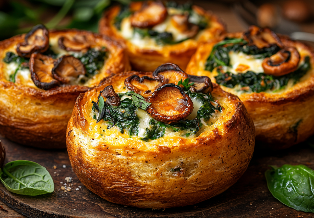 Йоркширский пудинг с лисичками и шпинатом — это изысканное блюдо, сочетающее воздушную текстуру классического пудинга с насыщенным вкусом грибов. Нежная начинка из шпината и моцареллы делает его сытным и оригинальным. Такой вариант отлично подойдет для обеда или ужина в кругу семьи.