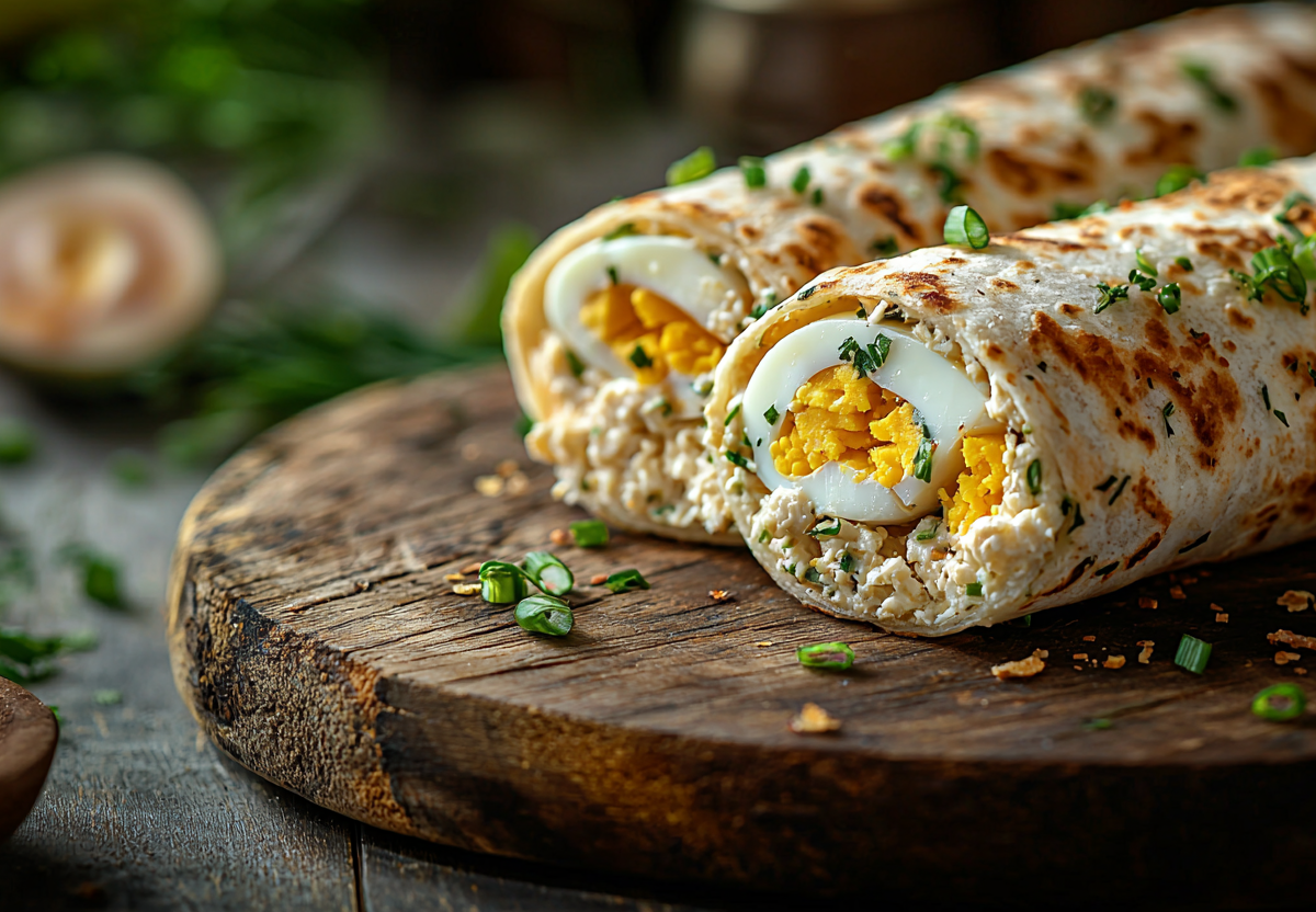 Армянский лаваш (1 лист) раскладываю на столе, можно сложить вдвое для плотности, и равномерно намазываю плавленый сыр (100–150 г) по всей поверхности. Филе слабосоленой селедки (200–250 г) нарезаю тонкими полосками и выкладываю вдоль лаваша, рядом распределяю вареные яйца (2 шт.), натертые на крупной терке. Мелко нарезанный зеленый лук (небольшой пучок) посыпаю сверху. Майонез (2 ст. л.) и зернистую горчицу (2 ч. л.) добавляю по вкусу для пикантности.