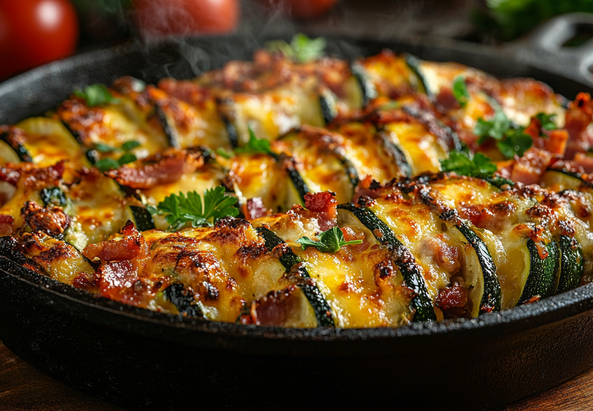 Кабачки-гармошки с сыром и копченой грудинкой — сочные и ароматные!