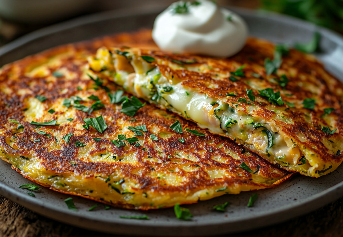 Кабачковый блин с начинкой — вкусный завтрак! Летний завтрак за 15 минут! Лёгкий, вкусный и полезный — этот кабачковый блин станет отличным началом дня. Нежное тесто с хрустящей корочкой и сочной начинкой понравится всем!