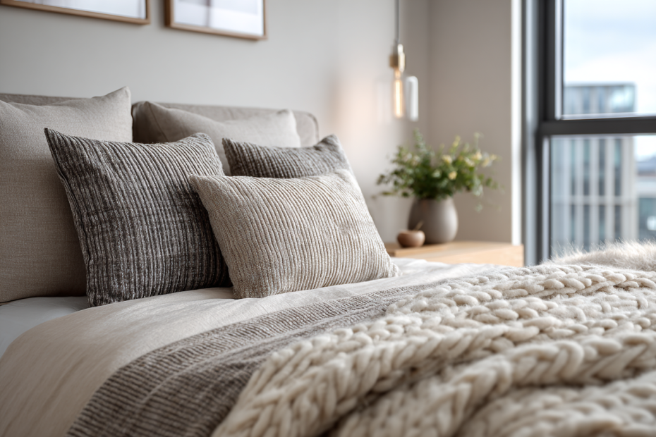 Плед — самый простой способ управлять этим эффектом. Небрежно наброшенный качественный плед из плотного хлопка или мягкой пряжи выглядит как намеренный стиль. Синтетический плед, скомканный в углу дивана, — как забытая вещь. Разница не в аккуратности — в материале и фактуре. Хороший текстиль прощает небрежность. Дешевый ее фиксирует.