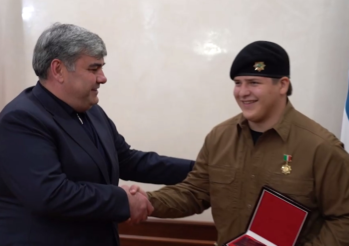 Сын главы Чеченской Республики Адам Кадыров пришел на свое награждение в Кабардино-Балкарии с золотым пистолетом. Какой орден получил 15-летний наследник Рамзана Кадырова, что известно о его званиях?
