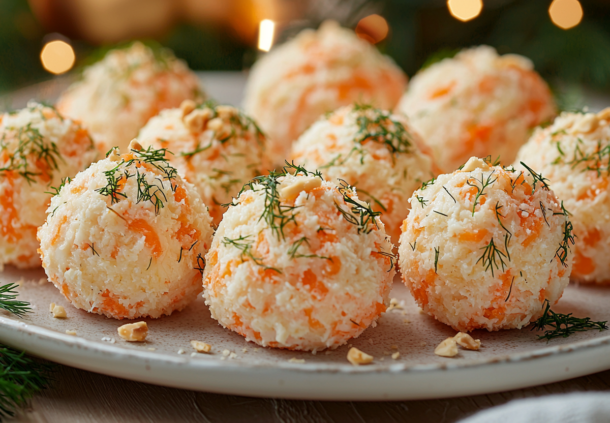 - Укроп мелко порубите. Сформируйте из массы небольшие шарики и обваляйте их в укропе. Охладите в холодильнике 30 минут перед подачей для лучшего сохранения формы.