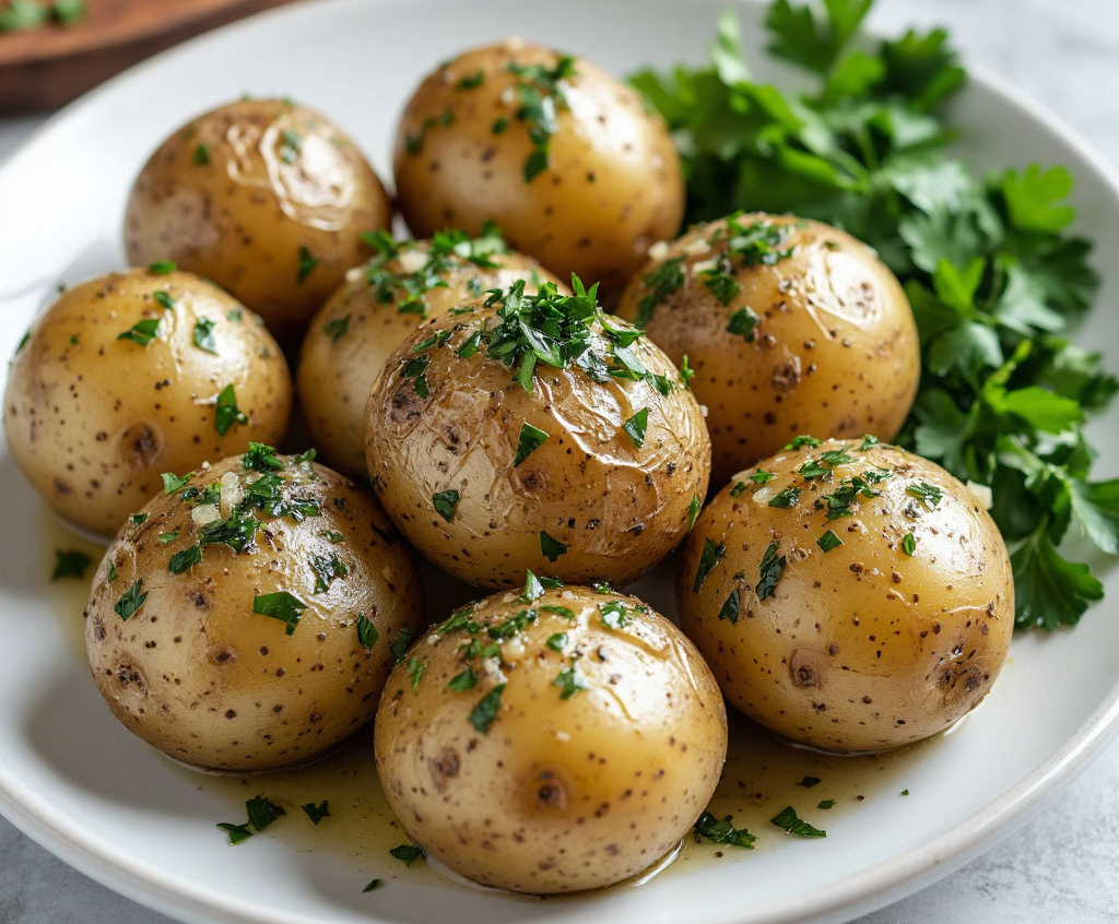 Потребуется: 10–12 небольших картофелин одинакового размера, 5 столовых ложек оливкового или сливочного масла, 4-5 зубчиков чеснока, крупный пучок свежей петрушки и укропа, соль крупного помола по вкусу. Картофель тщательно вымойте щеткой и обсушите. Сделайте вокруг каждого клубня несколько глубоких поперечных надрезов, не дорезая до конца. Выложите на противень, слегка посолите и запекайте 40–50 минут при 200 °C до мягкости и румяной, подсохшей кожицы. Пока картофель печется, приготовьте соус: растопите масло, добавьте пропущенный через пресс чеснок и мелко рубленную зелень. Горячий запеченный картофель полейте чесночным маслом и сразу подавайте, чтобы кожица оставалась хрустящей.