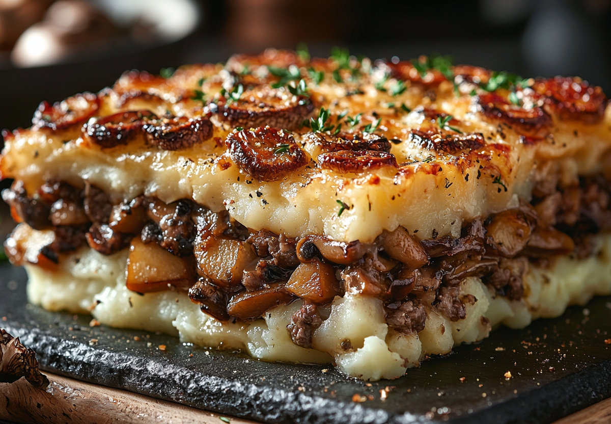 Картофельная запеканка с фаршем и грибами — сытное блюдо для всей семьи. Сочетание нежного пюре, ароматного мяса и румяной сырной корочки никого не оставит равнодушным. Готовится просто, а результат превосходит все ожидания — сытно, вкусно и очень аппетитно.