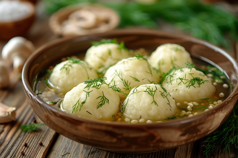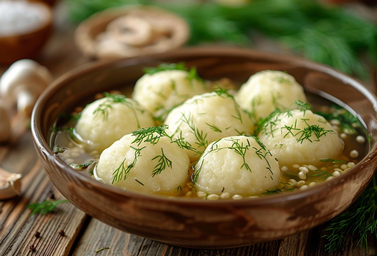 Сырой картофель натирают на мелкой терке, отжимают сок, а крахмал возвращают в массу — он связывает клецки. Ячневую крупу варят до готовности, остужают и соединяют с картофелем. Из полученного теста формируют круглые клецки одинакового размера. Опускают их в кипящую подсоленную воду и варят до всплытия плюс пару минут. Подают с солеными грибами, рубленым укропом и чесноком — простое блюдо раскрывается по-новому, удивляя насыщенным вкусом и легкой пикантностью.