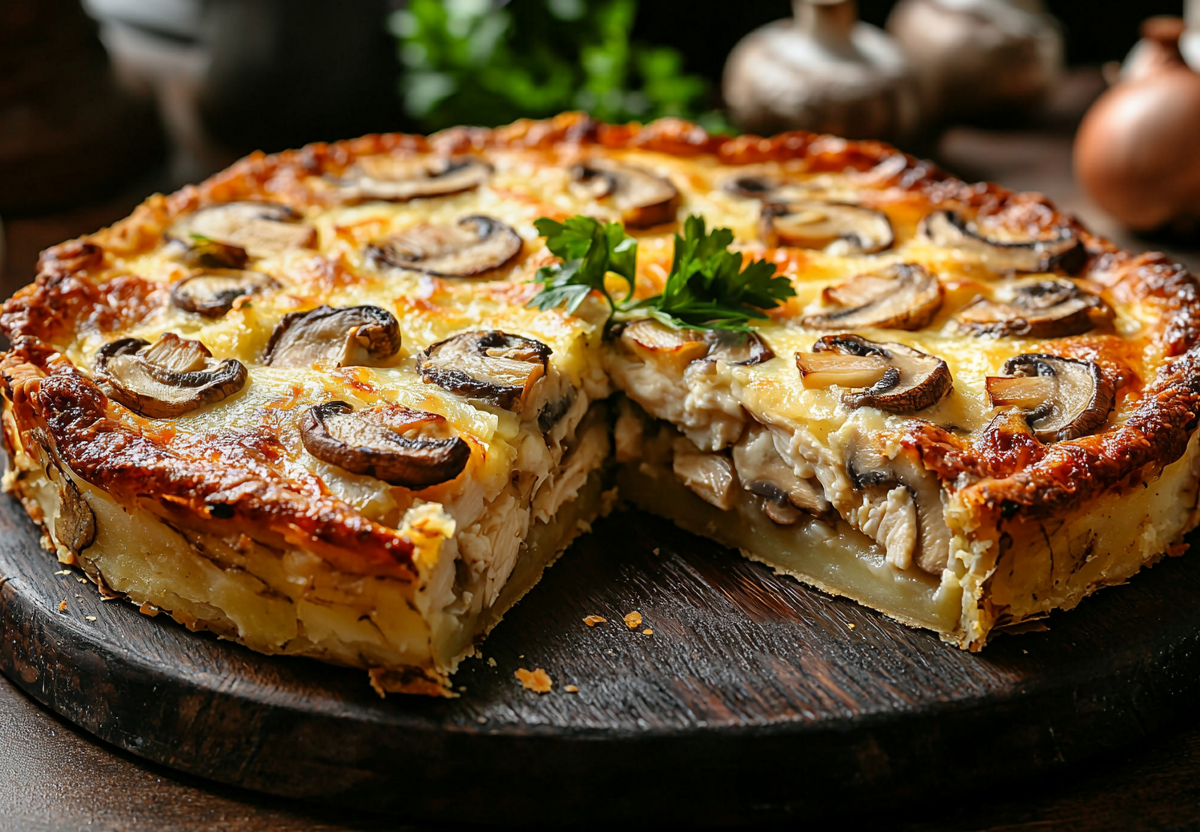 Картофельный пирог «Развалюха»: начинка из курицы и грибов — просто и вкусно. Восхитительно сытный и ароматный пирог, который станет настоящим спасением на ужин! Минимум усилий, доступные продукты, а результат — золотистая хрустящая корочка, нежная начинка и море восторга от ваших близких. Идеально для тех случаев, когда хочется и вкусно, и быстро!