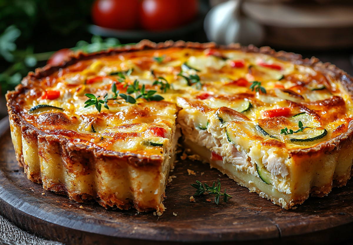 Картофельный пирог с курицей и кабачком! Летний шедевр — все просят рецепт! Невероятно сытный и ароматный тарт с нежным картофельным основанием, сочной куриной начинкой и полезным кабачком! Идеальное низкокалорийное блюдо для семейного ужина — вкусно, полезно и просто готовится.
