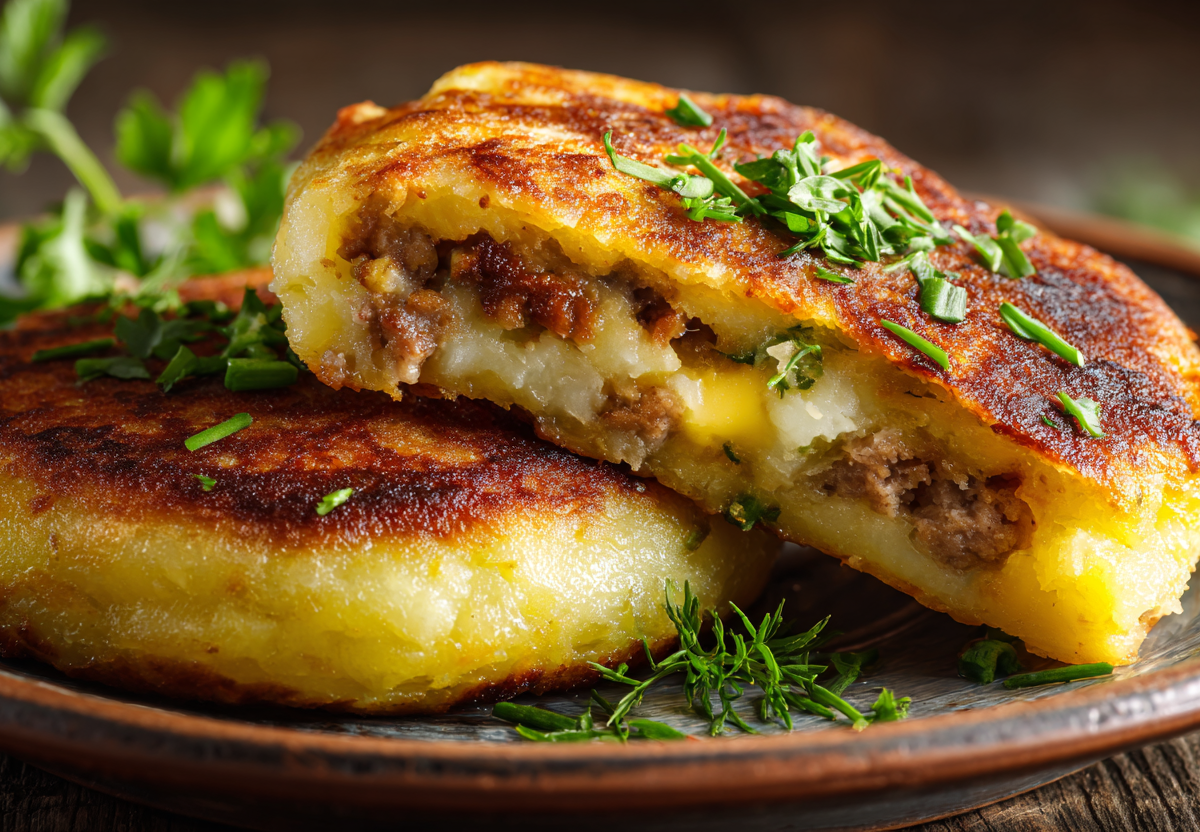 Картофельные зразы — это не просто котлетки, а полноценное сытное блюдо, где нежное картофельное тесто скрывает ароматную начинку с тягучим сыром и колбасой.