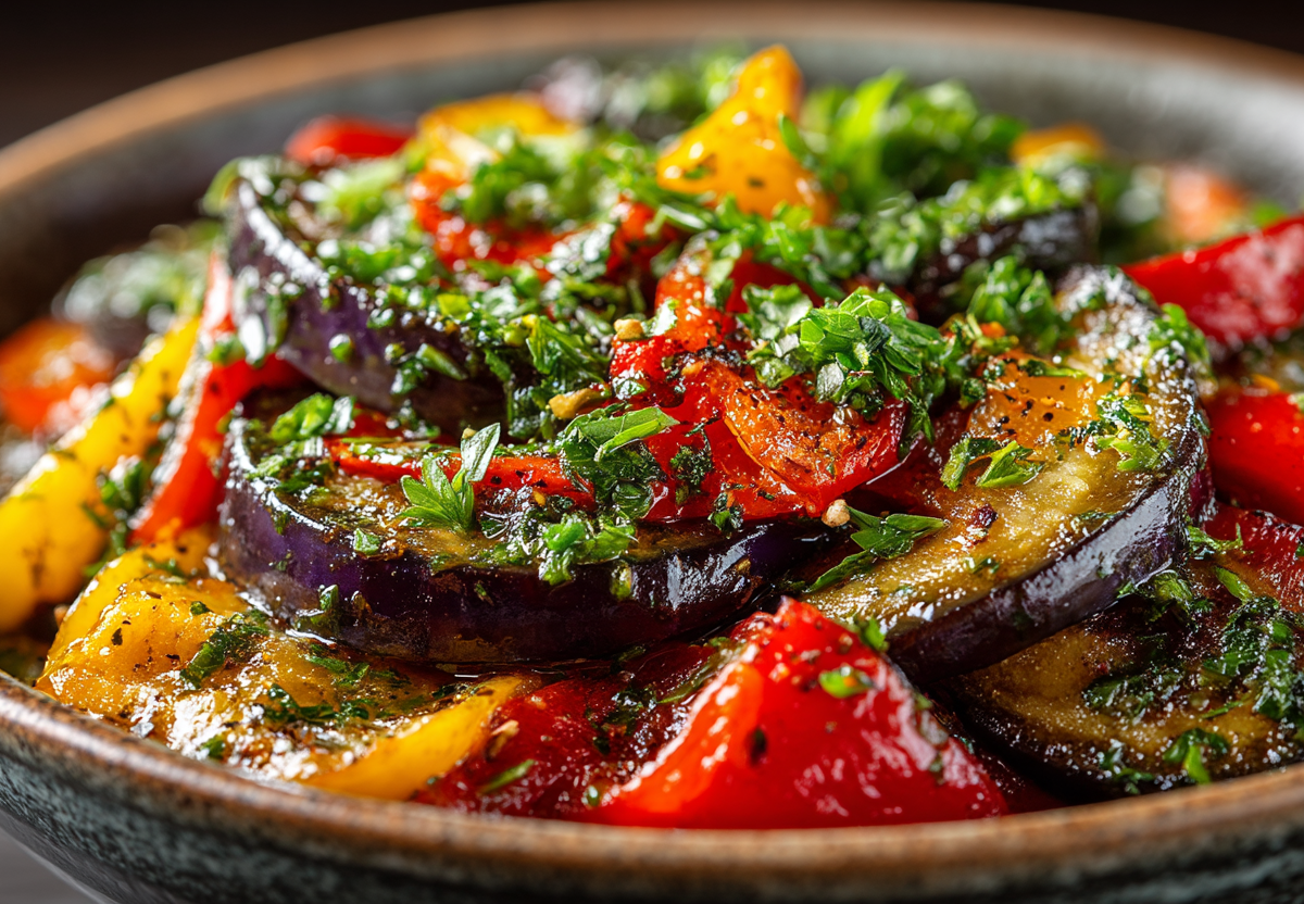 Этот рецепт — квинтэссенция средиземноморских акцентов в формате экспресс. Минимум посуды, никаких брызг масла на плите, а на выходе — ароматное, теплое овощное блюдо, которое может быть и самостоятельной закуской, и изысканным гарниром к мясу или рыбе.